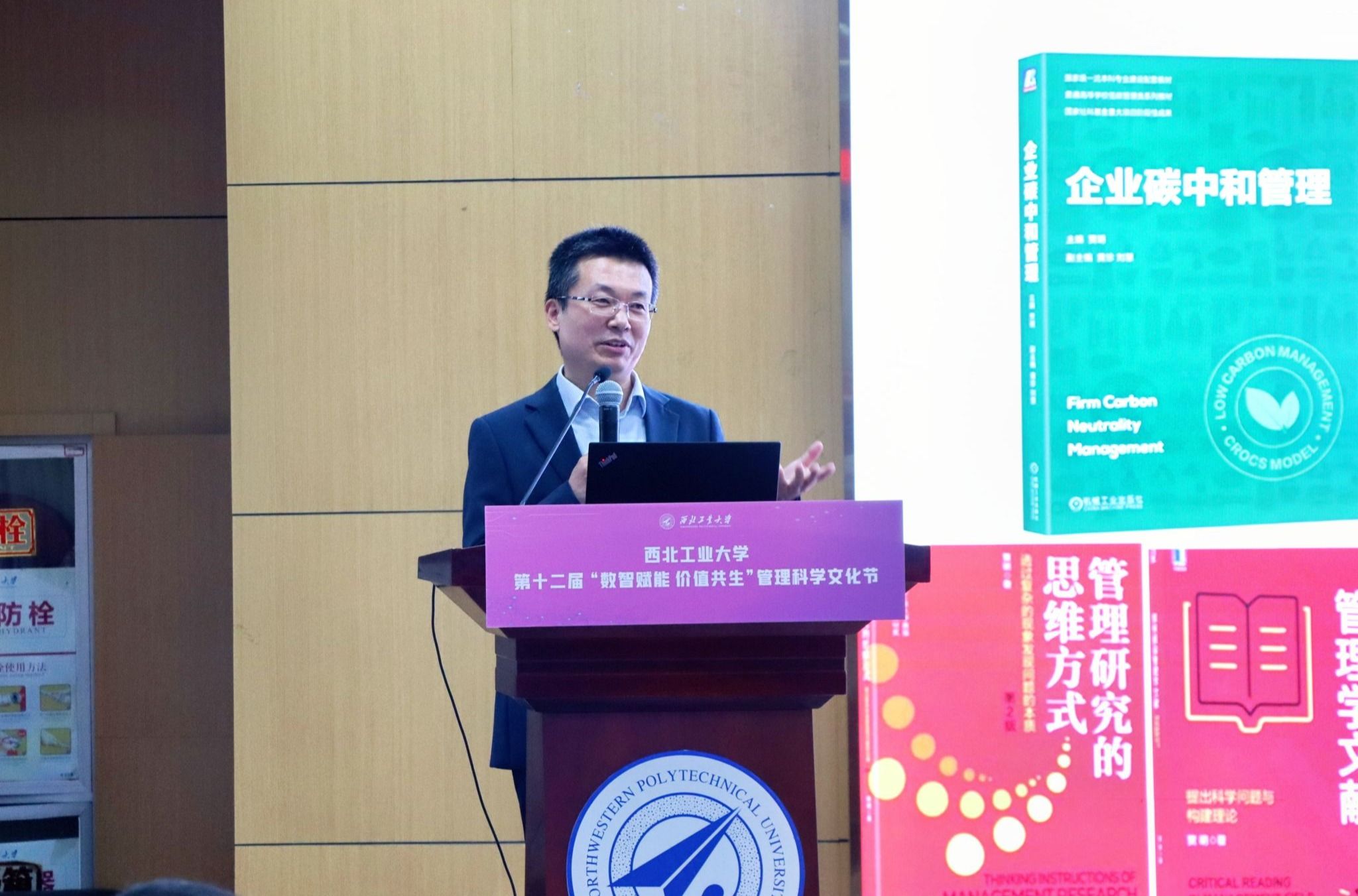 开幕式结束后,贾明为师生作题为《碳中和:中国企业转型发展之路》的报告。他从国家碳管理的现状与政策背景出发,详细分析了开展企业碳管理的重要意义和存在的五大难点,系统介绍了基于“确碳、减碳、抵碳、披碳、积碳”五维评价CROCS模型、指标体系以及连续五年对上市公司展开碳管理评估的成果。报告内容紧扣国家“双碳”战略需求和企业碳管理学术前沿,激发了同学们的兴趣和热情。报告结束后,师生围绕感兴趣的问题进行了提问交流。