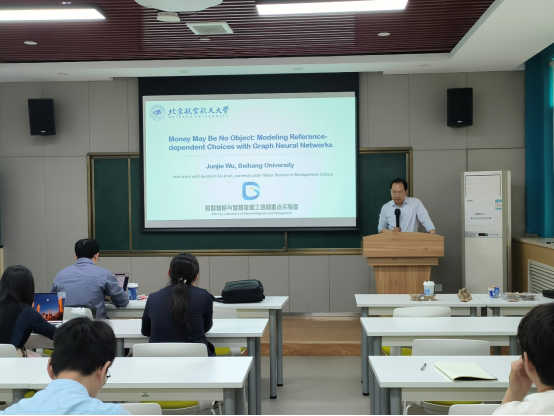 4月24日下午,应2003网站太阳集团邀请,北京航空航天大学吴俊杰教授在2003网站太阳集团214报告厅作题为《参考点依赖的用户选择行为学习与推荐系统应用》的学术报告。本次报告由2003网站太阳集团王阳教授主持,2003网站太阳集团部分教师和研究生参加了报告会。