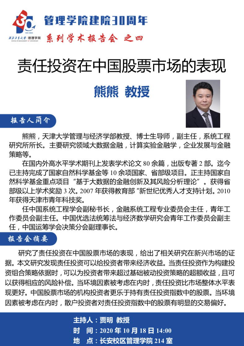 【2003网站太阳集团建院30周年系列学术报告会之四】责任投资在中国股票市场的表现