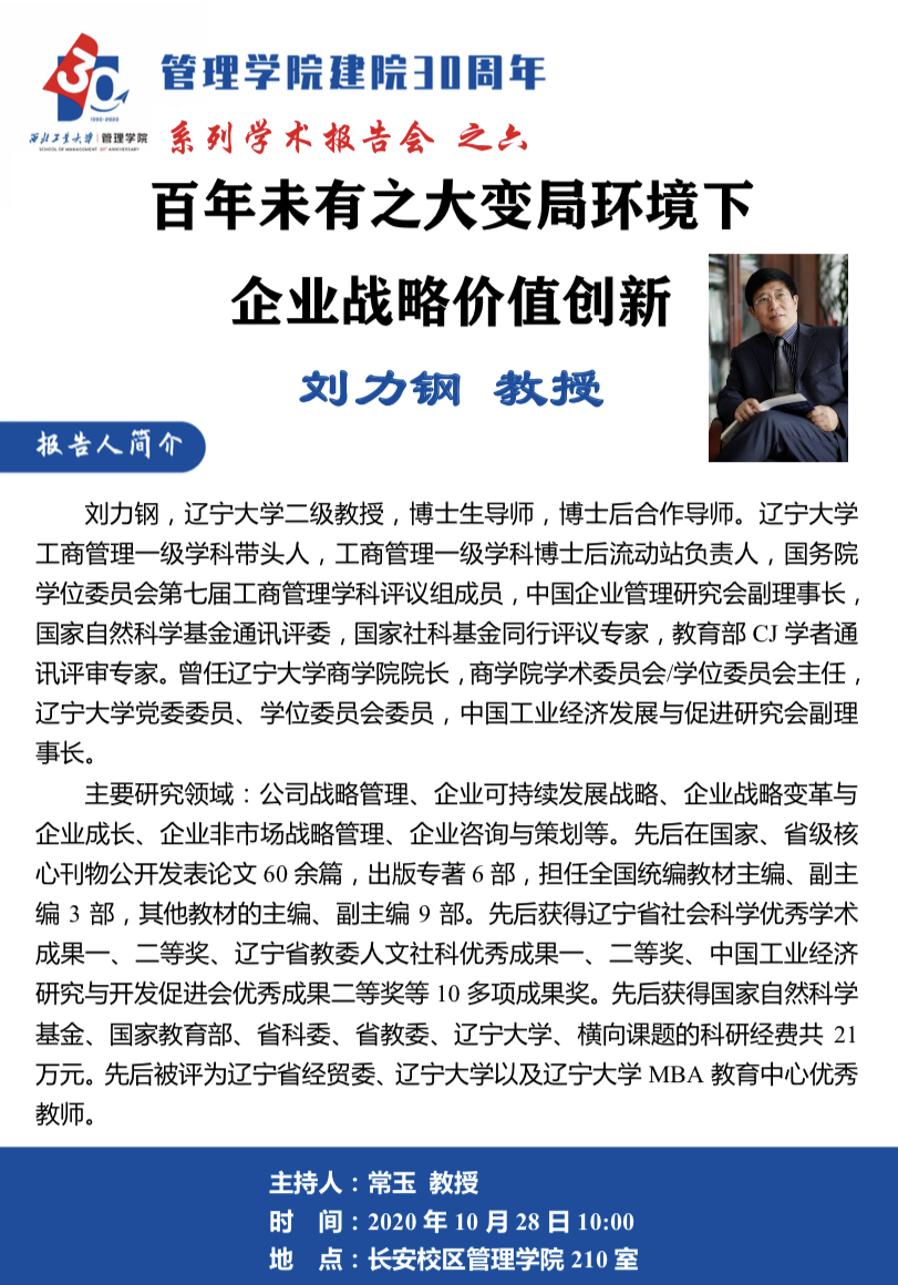【2003网站太阳集团建院30周年系列学术报告会之六】百年未有之大变局环境下企业战略价值创新