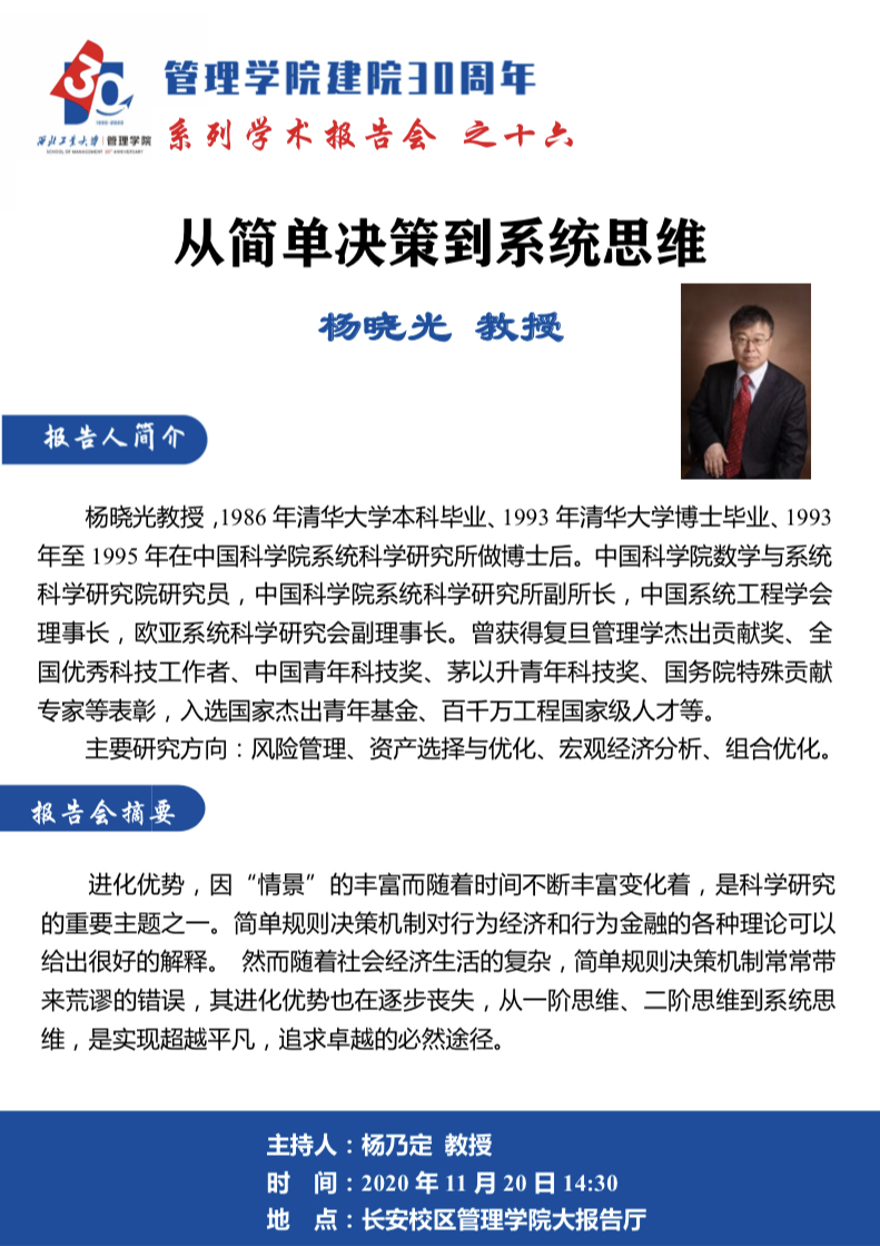 【2003网站太阳集团建院30周年系列学术报告会之十六】从简单决策到系统思维