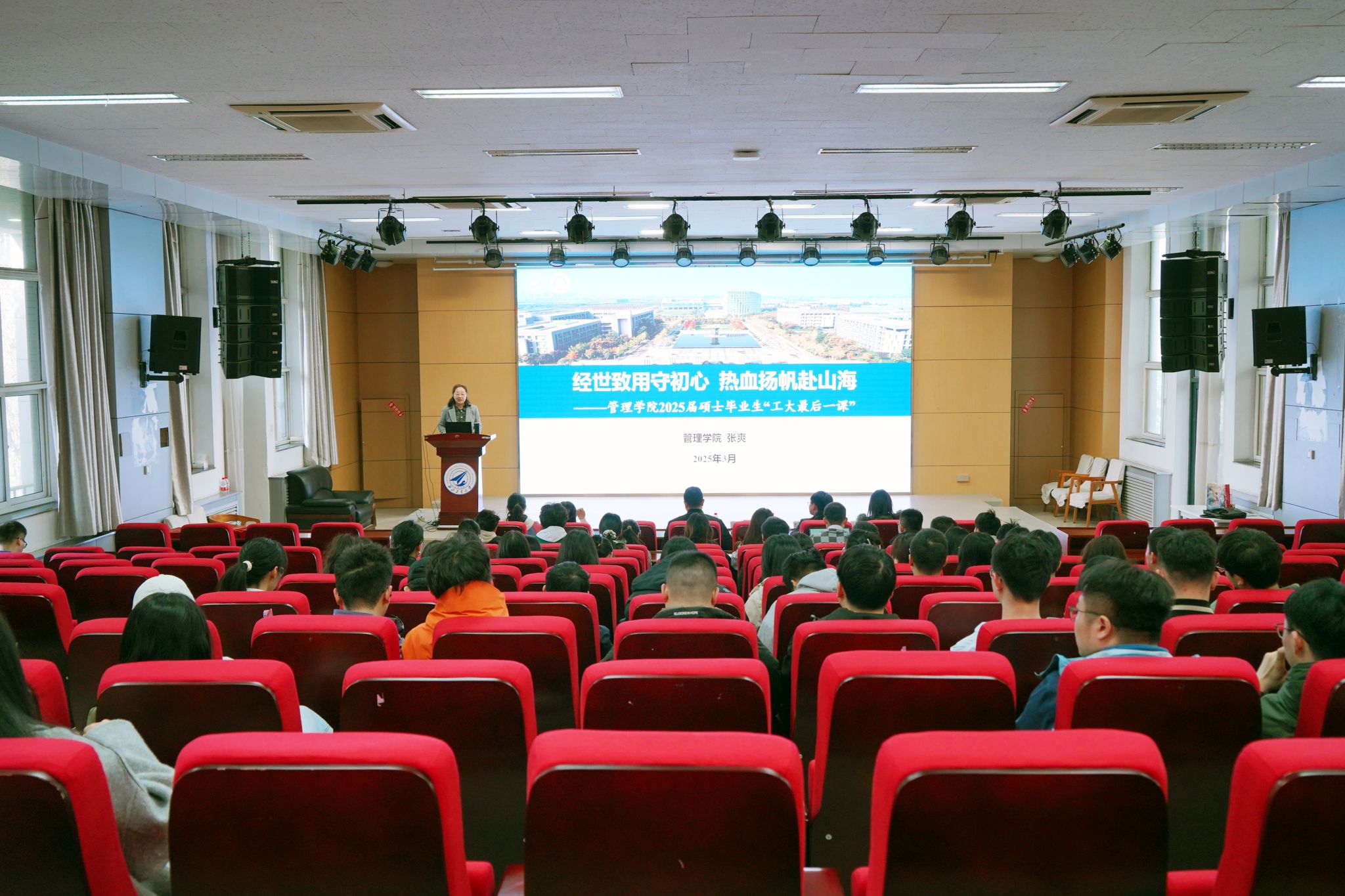 为扎实做好2025届毕业生离校教育工作,3月21日下午,2003网站太阳集团党委书记张爽以《经世致用守初心,热血扬帆赴山海》为题,为2025届全体硕士研究生带来了意义非凡的“工大最后一课”。活动由学院党委副书记王海啸主持。