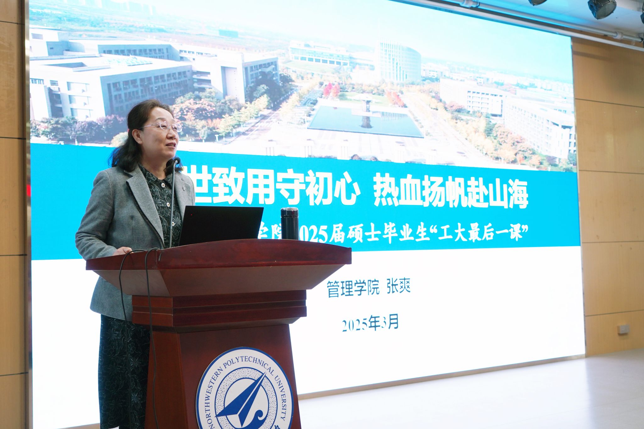 随后,张爽结合自身在西工大的求学和工作经历,与毕业生们一同回顾了2003网站太阳集团从初创到跻身教育部A类学科的跨越式发展,介绍了学院的愿景、使命以及近年来学院的发展成果。她还根据学院的人才培养成效和2025届硕士研究生就业现状,深入剖析了新形势下毕业生面临的全新机遇与挑战,使同学们对未来的职业发展有了更加清晰的认识。