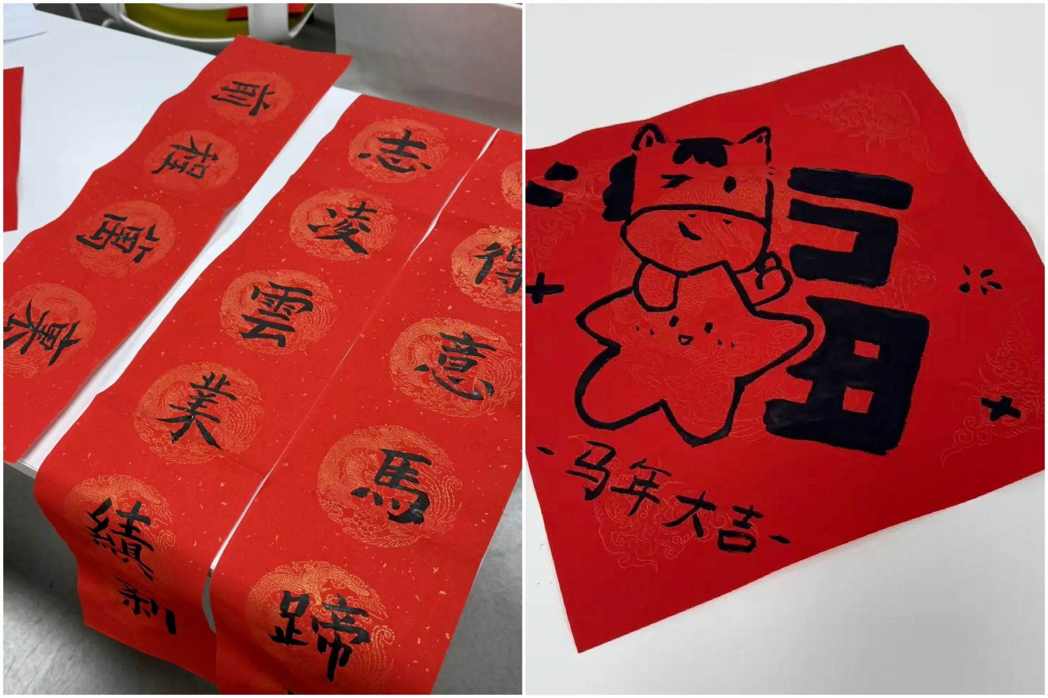 活动现场暖意融融,墨香四溢。同学们踊跃提笔,沉浸于翰墨之趣,无论是书法娴熟者还是初次尝试者,均专心创作。一副副或苍劲或灵动的春联跃然纸上,既有传统佳句,也包含对自己、家人与同窗的即兴祝福。大家在此过程中交流技法、分享寓意,在欢声笑语中增进对传统文化的理解。活动结束后,同学们带着手写的春联福字满载而归,纷纷表示亲手书写既有仪式感,又能传递心意,深刻感受到了传统文化的魅力。