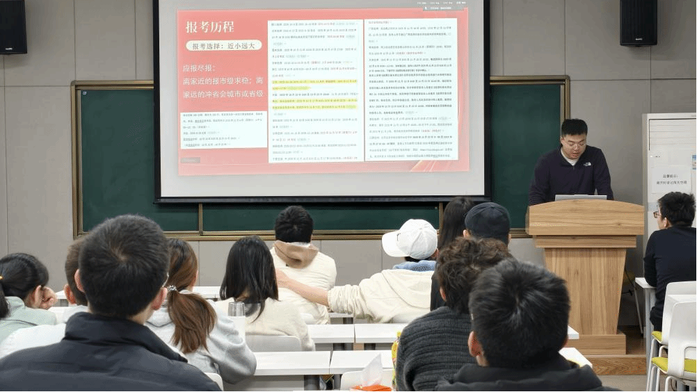 管理科学与工程专业硕士毕业生王磊,聚焦选调经验,从报考情况的细致分析、笔试准备的充分备战、面试准备的精心打磨以及个人经验的无私分享,四个角度娓娓道来。他贴心推荐了参考书籍和名师,建议同学们在考公时尽量留有退路,以稳定心态应对挑战;备考时多与同学交流分享经验,相互鼓励,共同进步。