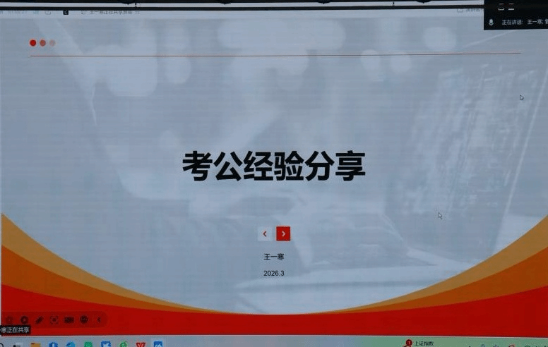 考公分享环节,2021级毕业生王一寒线上分享,结合考入秦皇岛审计局的经历,围绕考公目标与备考展开讲解,提醒大家关注招考公告、精准选岗、结合考情复习,并分享行测申论思路与应试心态,为同学提供实用备考指导。