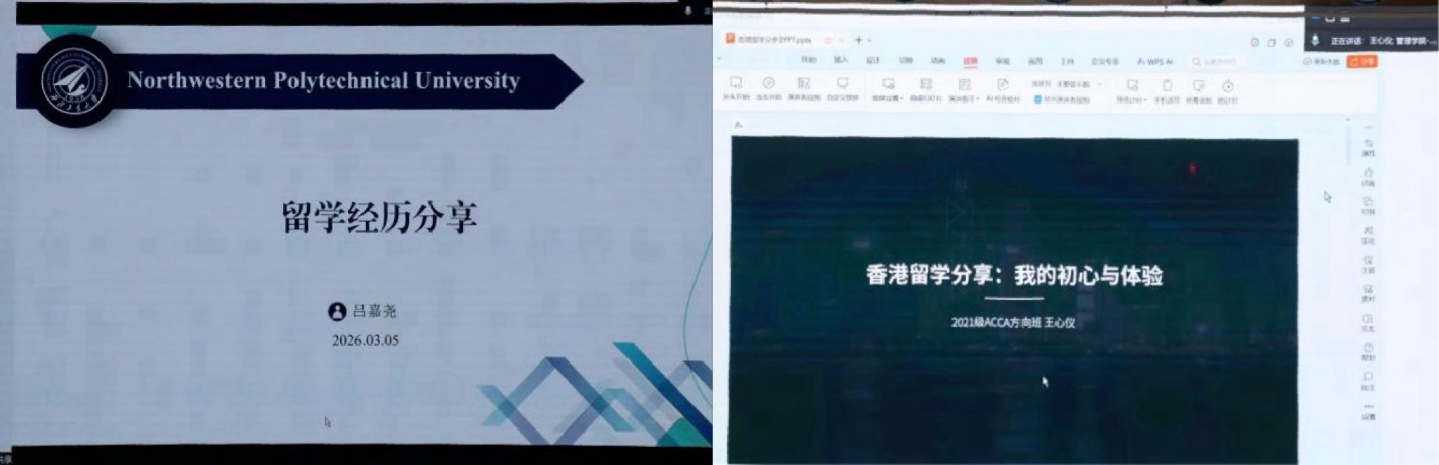 留学分享环节,2021级毕业生吕嘉尧、王心仪线上交流经验。吕嘉尧结合新加坡国立大学申请经历,分享项目申请与语言准备经验,建议大家用好学院资源、提早规划。王心仪以录取香港城市大学的经验为例,分享在港学习生活,提醒大家提前准备,把握申请关键节点。