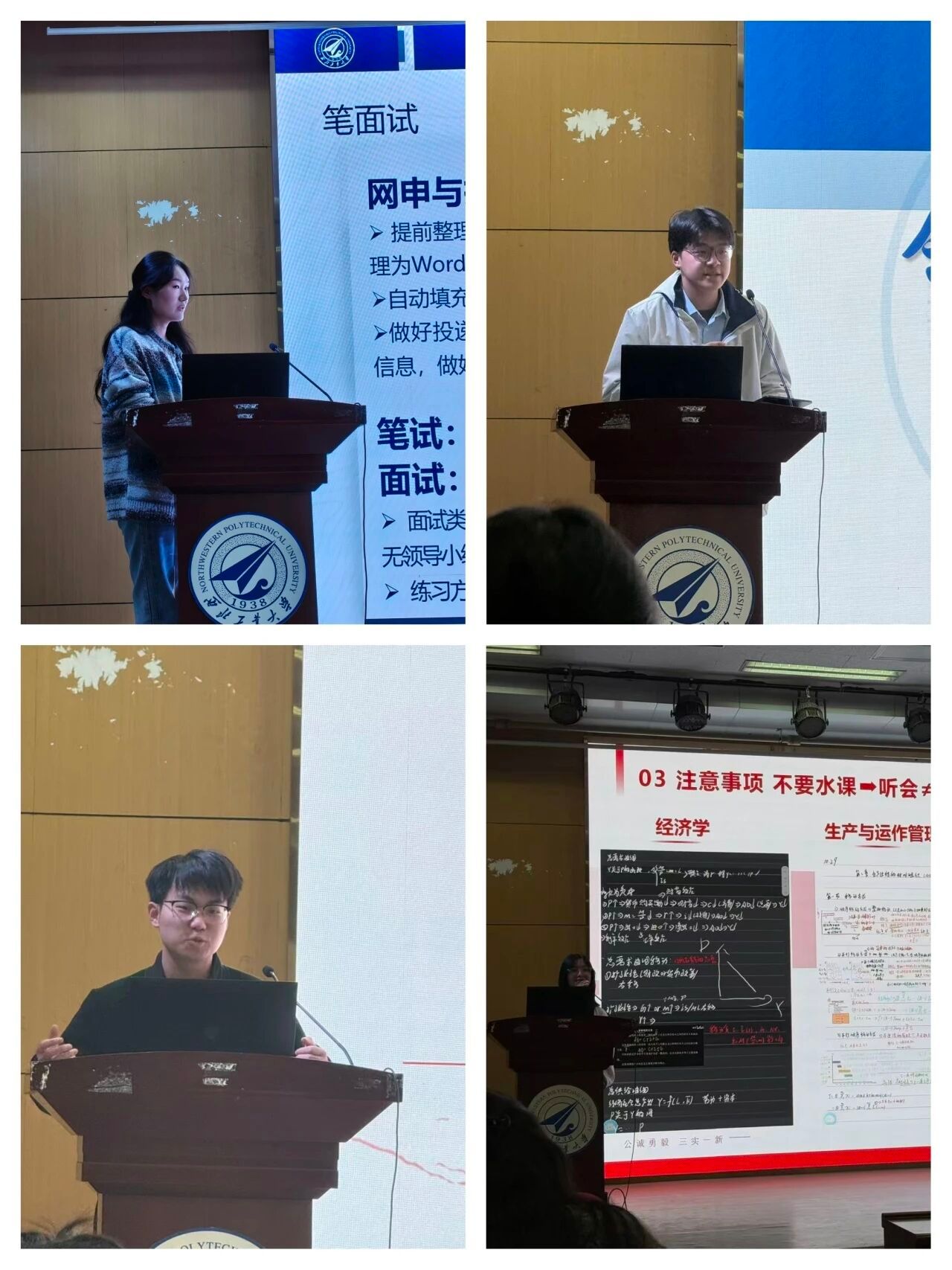 工程管理专业的邓炅杰介绍了专业在航空、航天、航海等领域的大型系统工程背景,并辅以详实的往届毕业生薪资数据,展示了良好的就业前景与发展潜力。王家明则分享了项目管理方向的职业发展体会,强调扎实的专业基础和持续学习能力是提升未来职场竞争力的关键。来自信息管理与信息系统专业的张成煦,解析了专业作为交叉学科“广而不深”的特点及其优劣势,鼓励同学们在实践中深耕技术或管理方向,充分发挥“懂技术的管理者”的复合型优势。