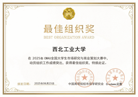 近日,第四届CMAU全国大学生市场研究与商业策划大赛全国总决赛在西安交通大学落下帷幕。经过专业知识认证考试、校内选拔赛、分赛区竞赛、全国总决赛的激烈角逐,西工大学子们凭借扎实的专业知识、出色的团队协作和创新的商业思维,在本次大赛中取得了卓越的成绩,荣获两项国家级一等奖、一项国家级二等奖以及最佳组织奖。