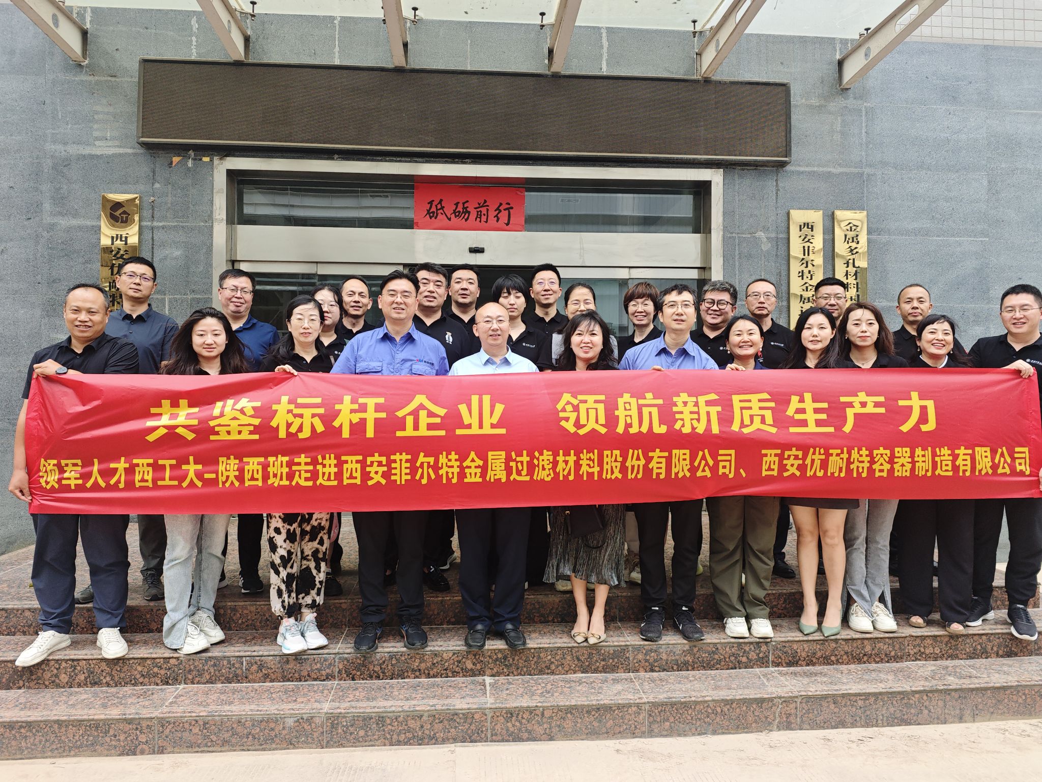 下午,先后来到西安菲尔特金属过滤材料股份有限公司和西安优耐特容器制造有限公司。两家企业是西北有色金属研究院集团的控股公司、国家小巨人企业。在生产车间,了解先进技术和企业文化,充分学习制造型企业的精益管理和产品质量体系。领军人才12班企业家、西安菲尔特金属过滤材料股份有限公司总经理孙鹏和西安优耐特容器制造有限公司副总经理李宁分别就“金属纤维多孔材料的开发和应用”以及企业发展进行了专业分享。现场企业家针对专业技术、行业前沿、经营管理等问题进行了深入交流讨论。