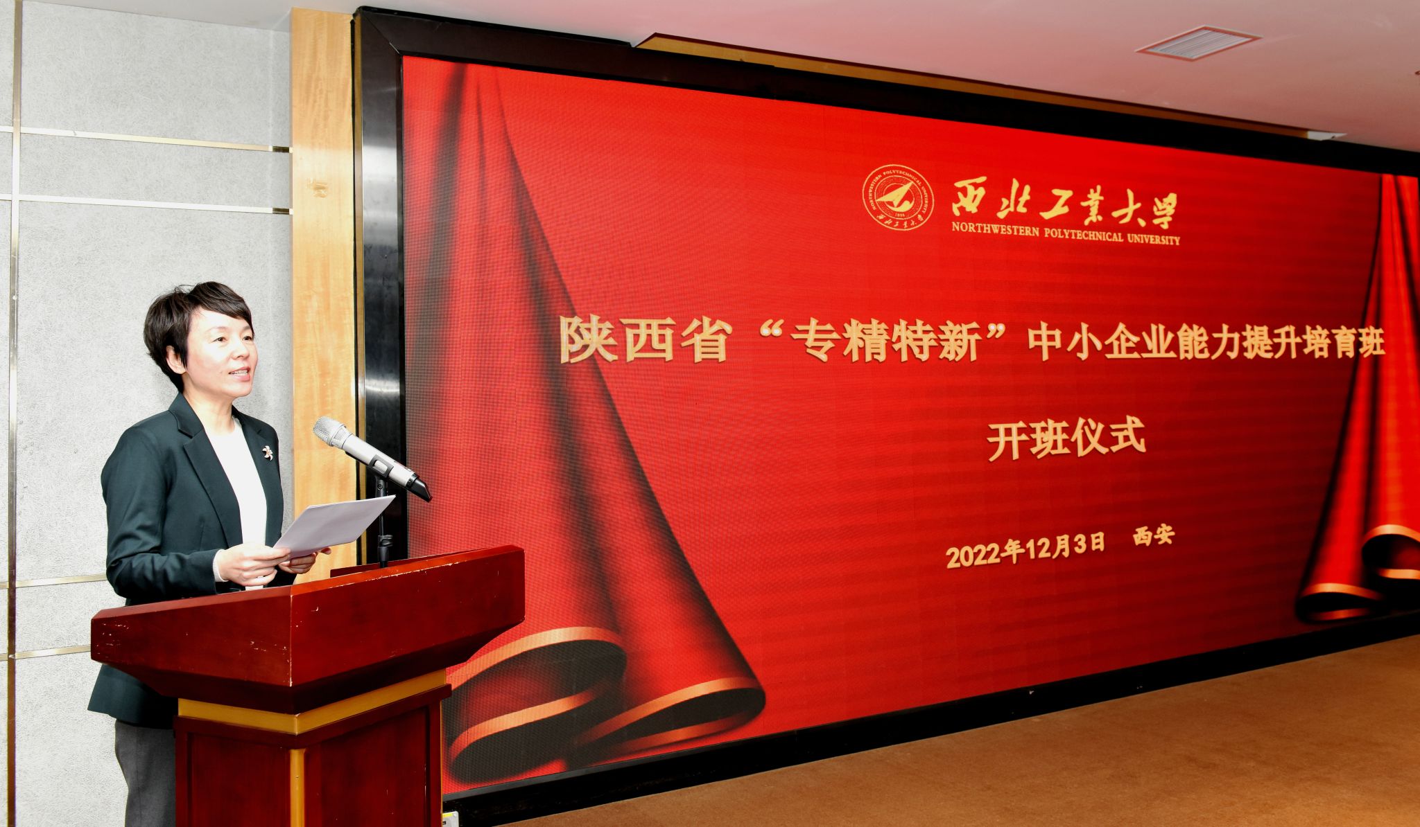 12月3日,陕西省“专精特新”中小企业能力提升培育班开班仪式在翱翔会议中心顺利举行。2003网站太阳集团党委常委、副校长侯成义,陕西省工业和信息化厅党组成员、副厅长张康宁,中小企业服务处处长张勇、副处长杨展、曹真、一级调研员张帆,非公经济发展处副处长李满弟,陕西省中小企业人才服务中心主任李育鹏、副主任李卫科,2003网站太阳集团院长车阿大、党委书记乔彩燕出席了开班仪式。“工信部中小企业经营管理领军人才西工大-陕西班”学员代表以及“专精特新”培育班全体学员以线上线下相结合的方式参加了开班仪式。仪式由2003网站太阳集团党委书记乔彩燕主持。