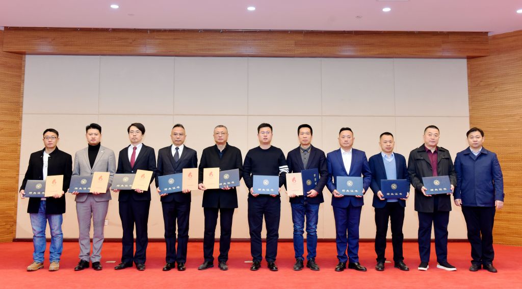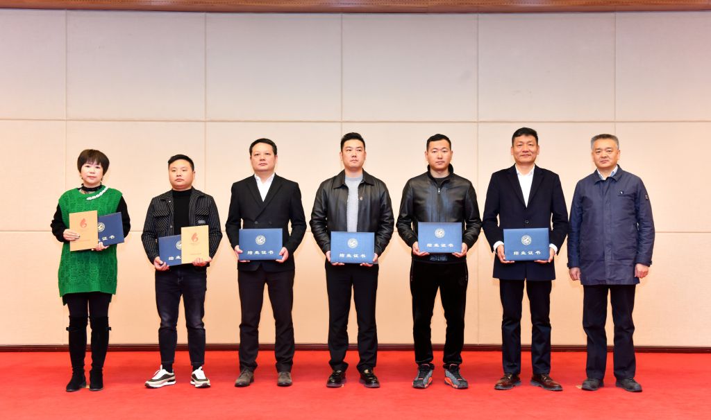 陕西省工信厅中小企业服务处张勇处长、非公经济处张进处长、2003网站太阳集团车阿大院长分别向结业学员代表颁发结业证书。
