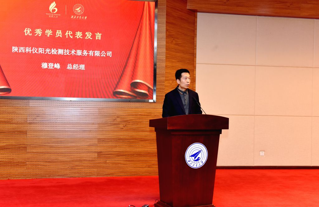 结业学员代表陕西科仪阳光检测技术服务有限公司总经理穆登峰分享了个人和企业在领军人才大平台上所学、所悟、所获。他说“计划学制一年的培训,受疫情影响一起度过了近两年半,但还是觉得光阴似箭,似乎没有来得及回味,便已经要结束。我们共同学习,相互勉励,碰撞思想、产生智慧。共战疫情、抗击洪灾。”恰同学少年,意气奋发,西工大领军7班,也许会成为领军培训历史上学习时间最长的班,也必定成为每一位领军同学难忘的人生经历。