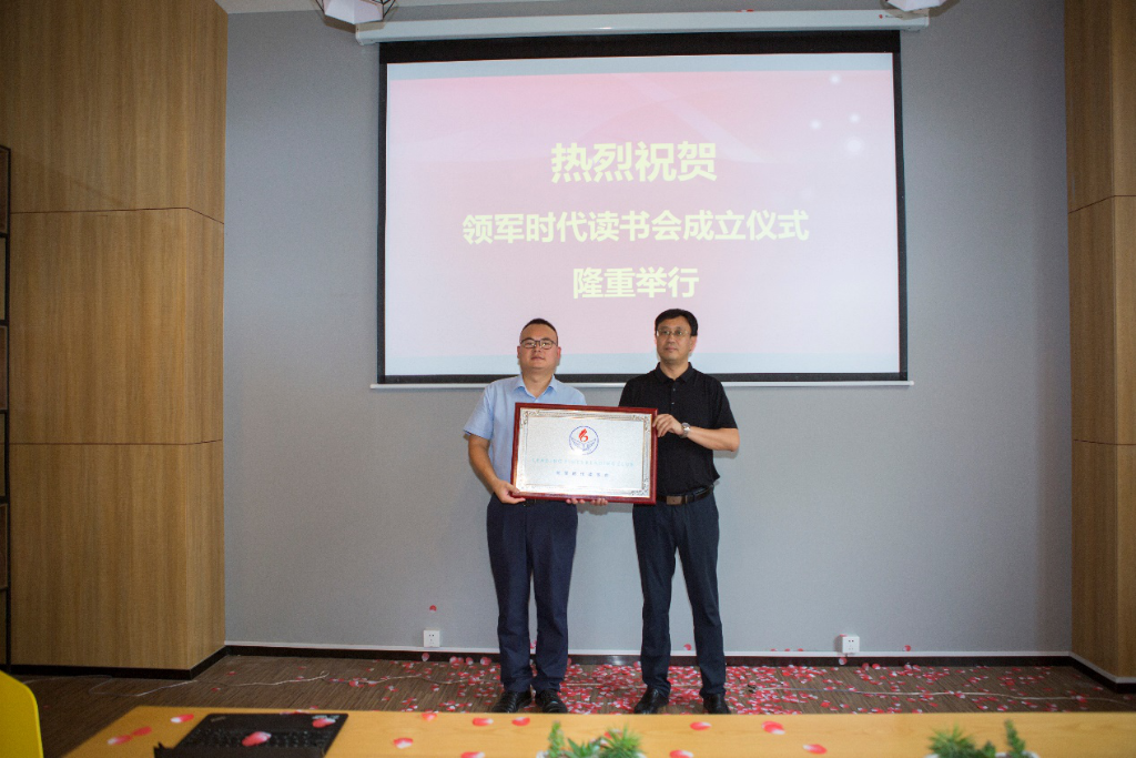 在陕西省实业发展集团工会刘丹渭主席致辞后,由陕西省中小企业人才服务中心李卫科副主任为“领军·时代企业家读书会”首届会长朱长江授牌。