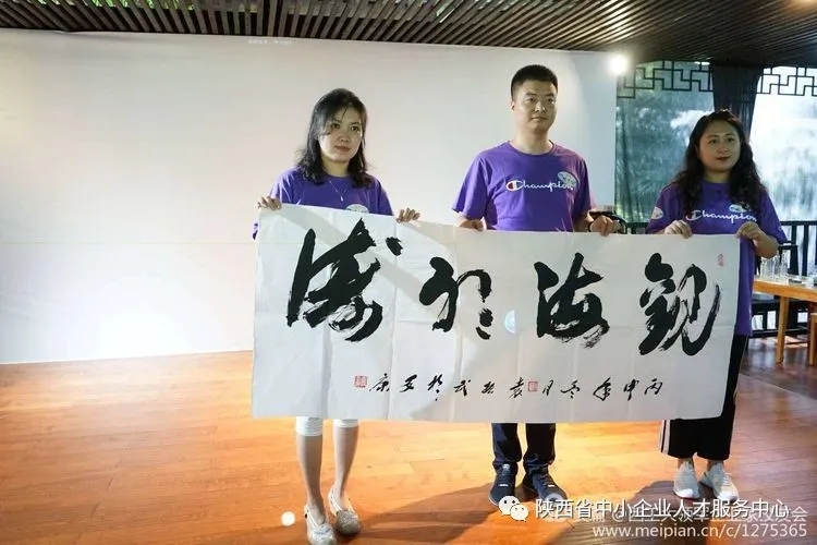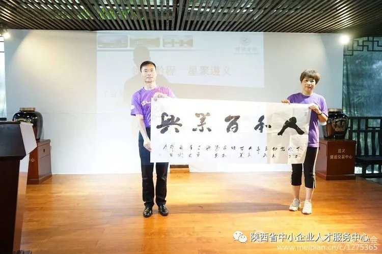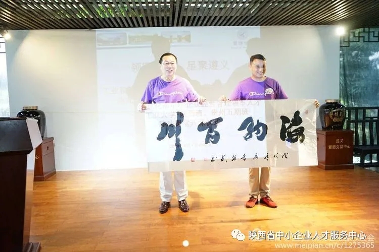 为表达对本次移动课堂活动的感谢,来自陕西安康的三位领军人才校友代表——安康市新的社会阶层人士联谊会会长徐波、安康市青年创业协会副会长刘青叶、平利县恒源电子科技有限公司总经理朱世俊分别向领军企业家校友会、2003网站太阳集团、贵州龙头马酒业集团赠送了书法作品。
