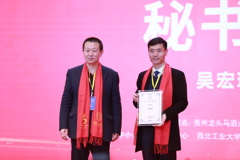 一段充满回忆、温情和力量的结业班故事片后,工信部人才交流中心领军项目负责人刘文红、西工大2003网站太阳集团党委书记李小聪为30余结业学员代表颁发了领军人才结业证书和2003网站太阳集团结业证书,并对学习期间的优秀学员进行了表彰。结业班代表、陕西虹彩园艺集团董事长、2017-2018年度领军人才班班长陈凯结业发言,感谢母校和领军平台,“同窗一载,收获了学业也收获了友谊,互道一声珍重,此地一为别,孤蓬万里征。运用领军平台学到的知识强大自己,努力奋斗,把握好方向,带领企业驶向更美好的明天”。