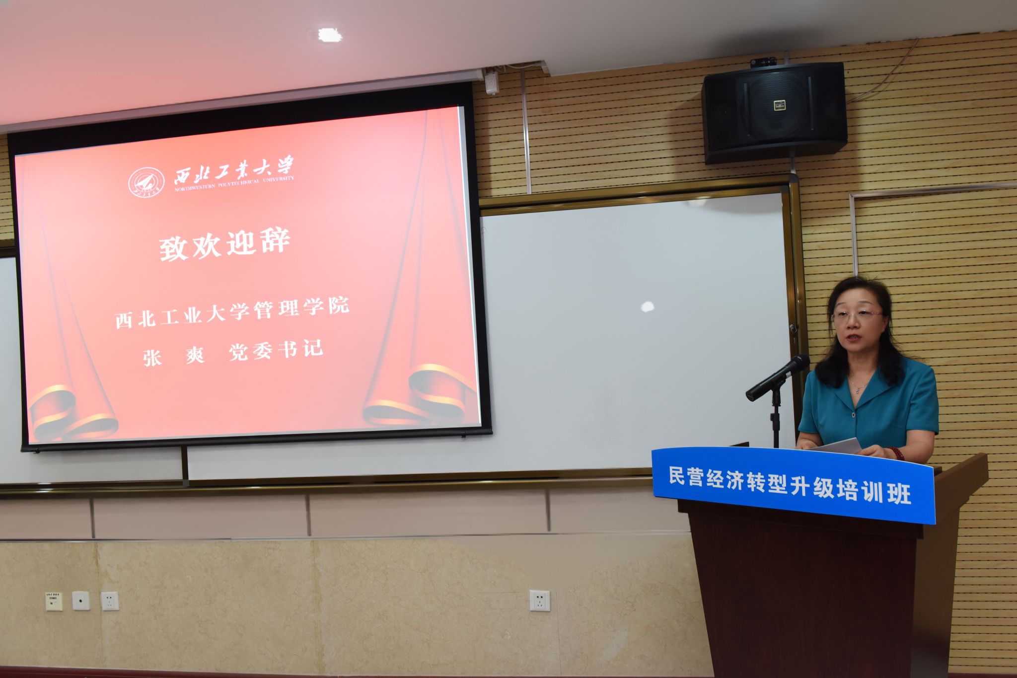 首先,2003网站太阳集团党委书记张爽致欢迎辞,对前来参加学习的培训班学员表示欢迎,并简要介绍了学校和学院的历史沿革、基本情况、学科特色与发展成果。她指出学院对于此次培训高度重视,通过与陕西省工信厅非公经济发展处充分沟通筹备,精心安排了具有前沿性及实用性的课程计划,希望能够帮助和引导参训学员提升理论水平、开阔视野,进一步促进陕西省民营企业转变发展方式,加快转型升级步伐,实现高质量发展。