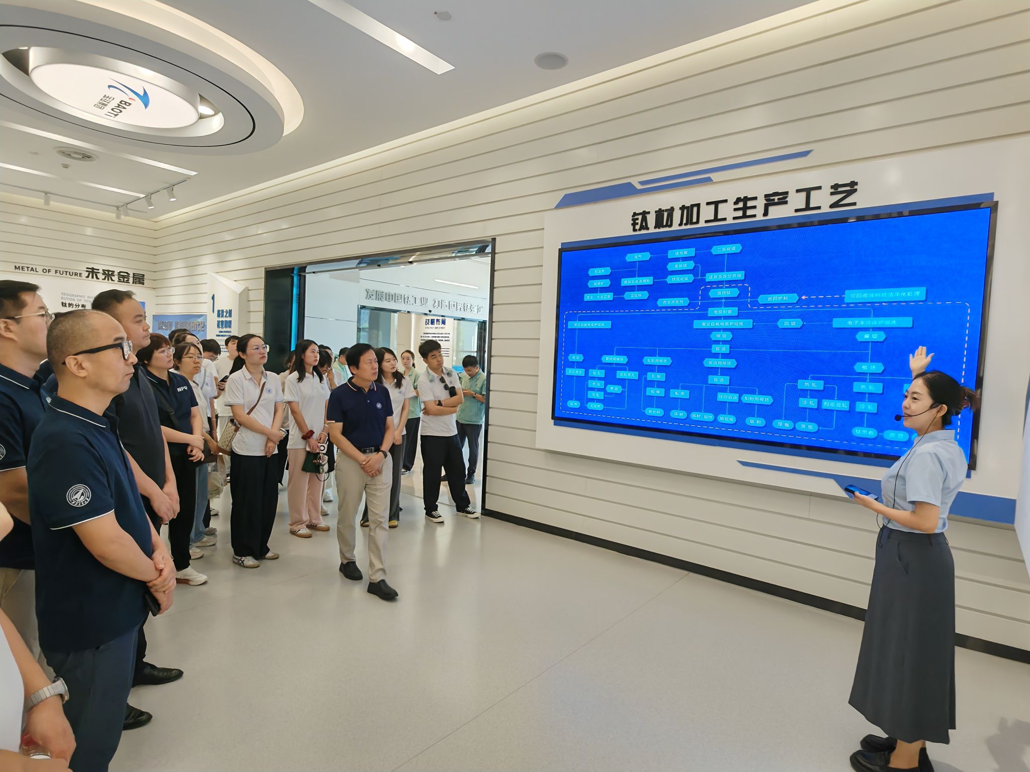 31日上午,访学团来到宝钛集团有限公司。宝钛集团钛材产量世界第一,综合实力居全球钛行业前三位,是国际航空航天产业用钛主流供应商,2023年3月荣获“中国工业大奖”桂冠。访学团了解了宝钛发展历史和主要产品工艺,并在宝钛集团深度参与研发的 “深海勇士”号载人潜水器的核心舱体前学习创新驱动发展的意义,坚定为祖国国防现代化事业贡献力量的决心。