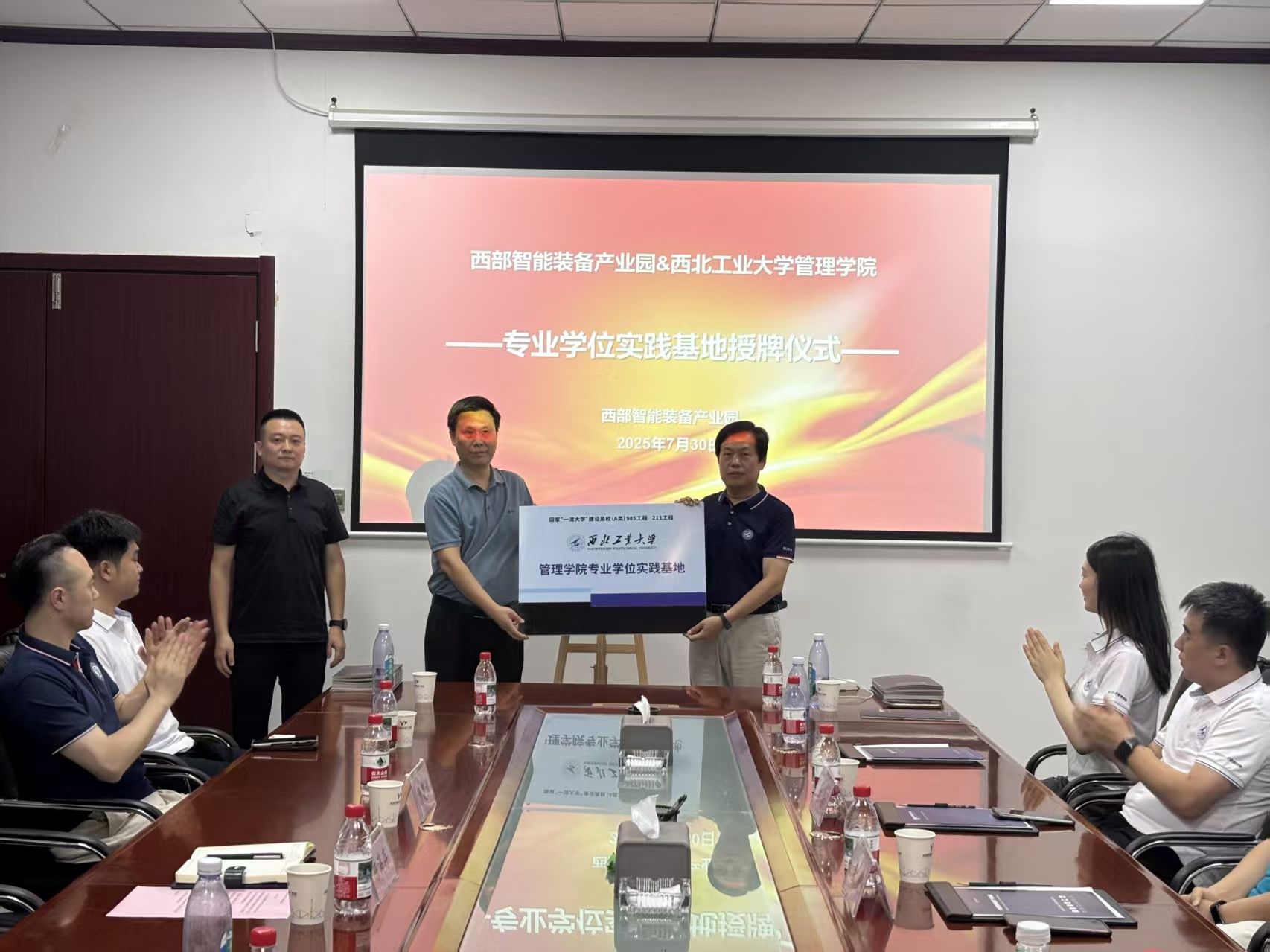 30日上午,访学团走进西部智能装备产业园。访学团首先参观了部分企业的生产线,了解企业数字化生产的流程与管理。参观结束后,金帆主任与西部智能装备产业园发展公司副总经理杨建洲共同为2003网站太阳集团专业学位实践基地揭牌。在座谈交流环节,管委会发展中心副主任陈满存详细介绍了产业园的经营发展情况,将目前所面临问题和未来规划向全体师生进行了阐述。
