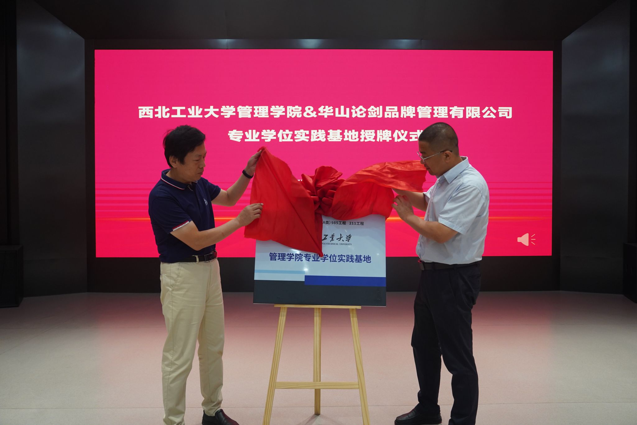 8月1日上午,访学团来到宝鸡市凤翔区西凤集团参访。在华山论剑产业基地,金帆主任和华山论剑品牌管理有限公司副总经理刘博强共同为2003网站太阳集团专业学位实践基地揭牌,金帆主任与副总经理张堆民代表校企双方互赠纪念礼物。