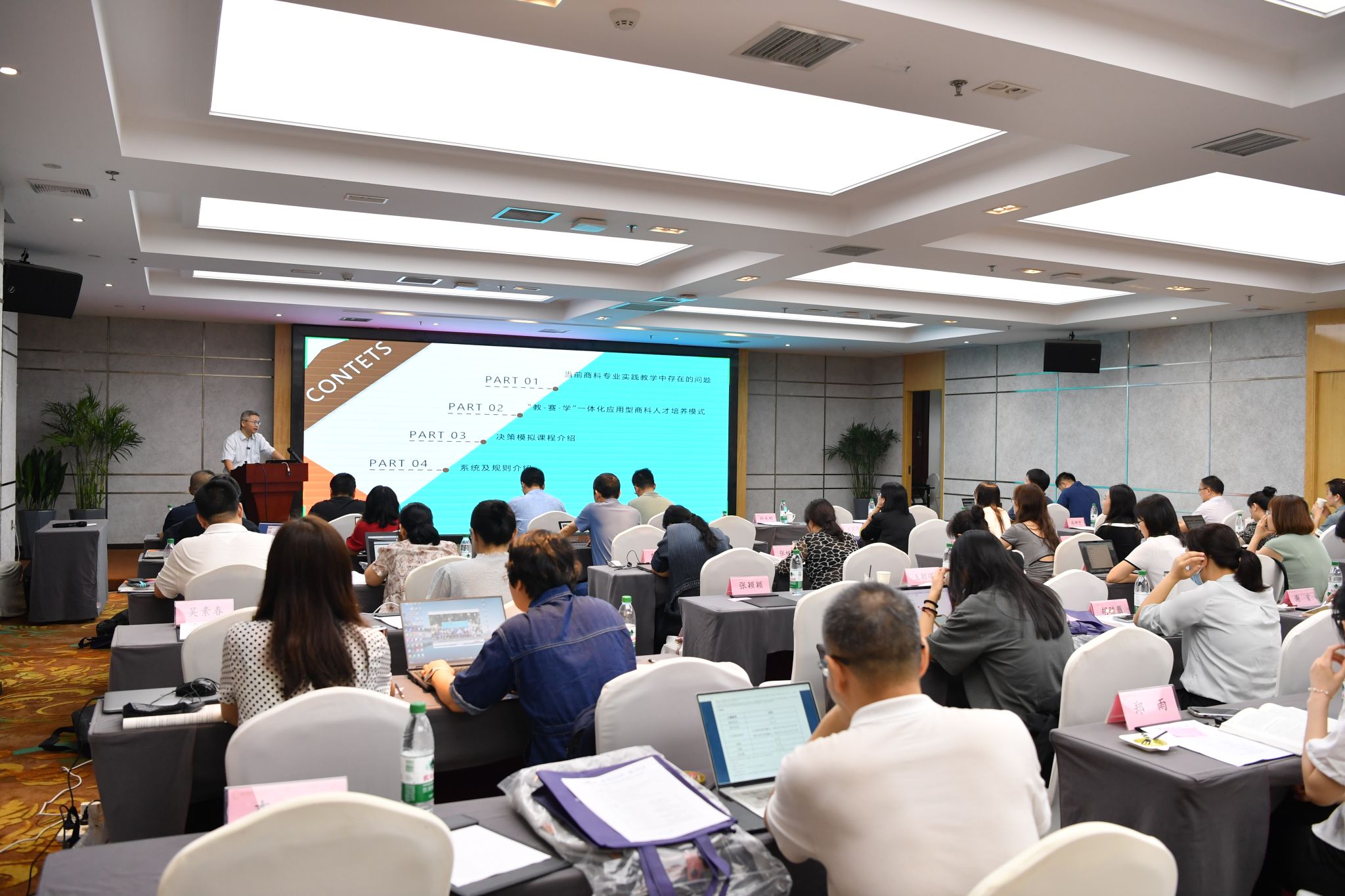 在实践操作环节,中国管理现代化研究会决策模拟专委会专家周成副教授,为参会教师详细讲解并指导使用iBizSim企业竞争模拟系统。各院校教师们自由组队,深入体验了市场预测、生产安排、工资制定、财务融资及报告分析等全流程操作,并展开了热烈的讨论与交流。通过这种亲身实践,教师们对决策模拟教学有了更深入的理解和掌握。