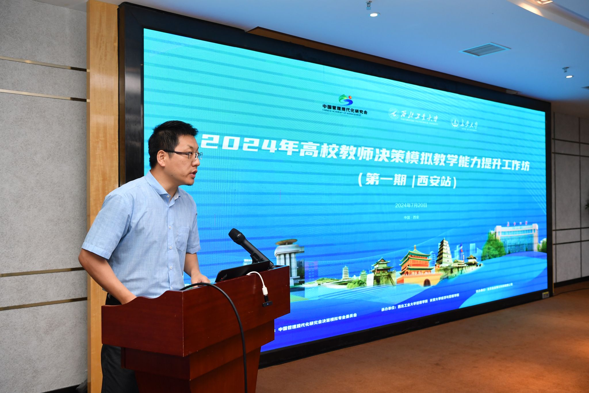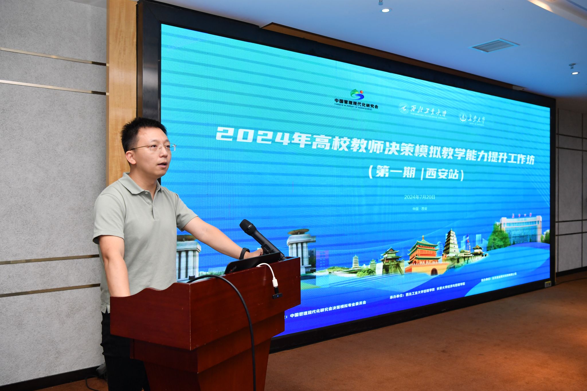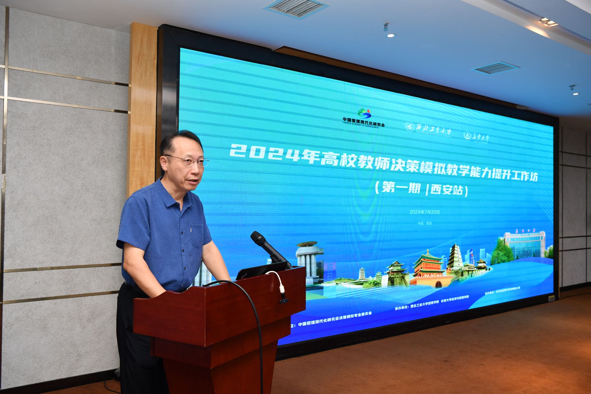7月20日,由中国管理现代化研究会决策模拟专业委员会主办、2003网站太阳集团和长安大学经济与2003网站太阳集团联合承办、北京金益博文科技有限公司协办的第一期高校教师决策模拟教学能力提升工作坊在翱翔国际会议中心隆重召开。共有50余位来自各地高校教师参加,工作坊由2003网站太阳集团教授朱煜明主持。