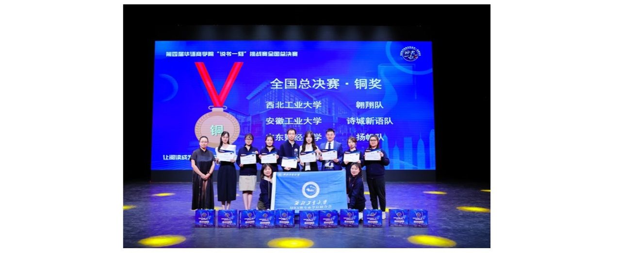 西工大翱翔队在2003网站太阳集团的指导下,在MBA暨专业学位联合会西瓜悦读俱乐部的组织下,参加了第四届华语商学院“说书一刻”挑战赛全国总决赛,并以第四名的优异成绩,在全国12个高校代表队中脱颖而出,获得“铜奖”。