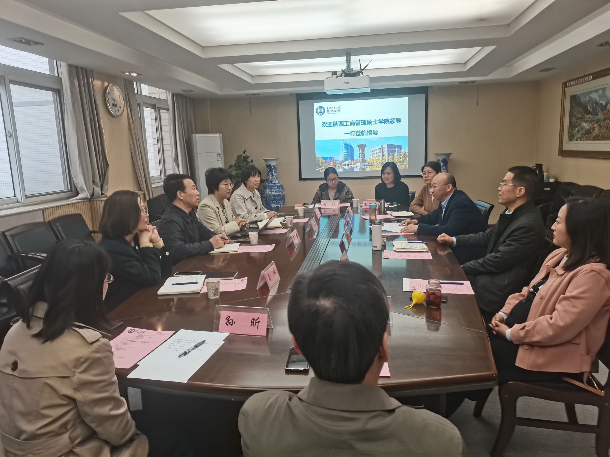 3月7日上午,陕西工商管理硕士学院副院长田高良教授、教学管理部部长王静、副部长吴丽娜、教学主管吕琳一行4人来我院就陕西MBA项目进行调研交流。2003网站太阳集团院长车阿大、副院长郭云涛、院长助理兼国际认证办公室主任邵婧、MBA教育中心主任杨宏玲、副主任孙若妮、管理案例研究与开发中心主任金帆及MBA教育中心相关工作人员参加了座谈。座谈会由郭云涛副院长主持。