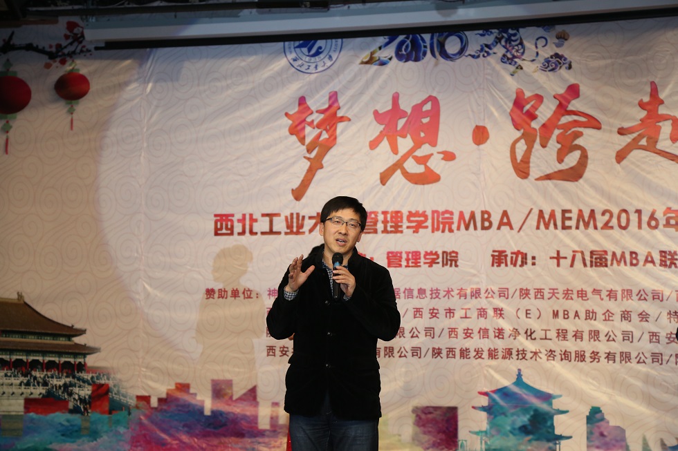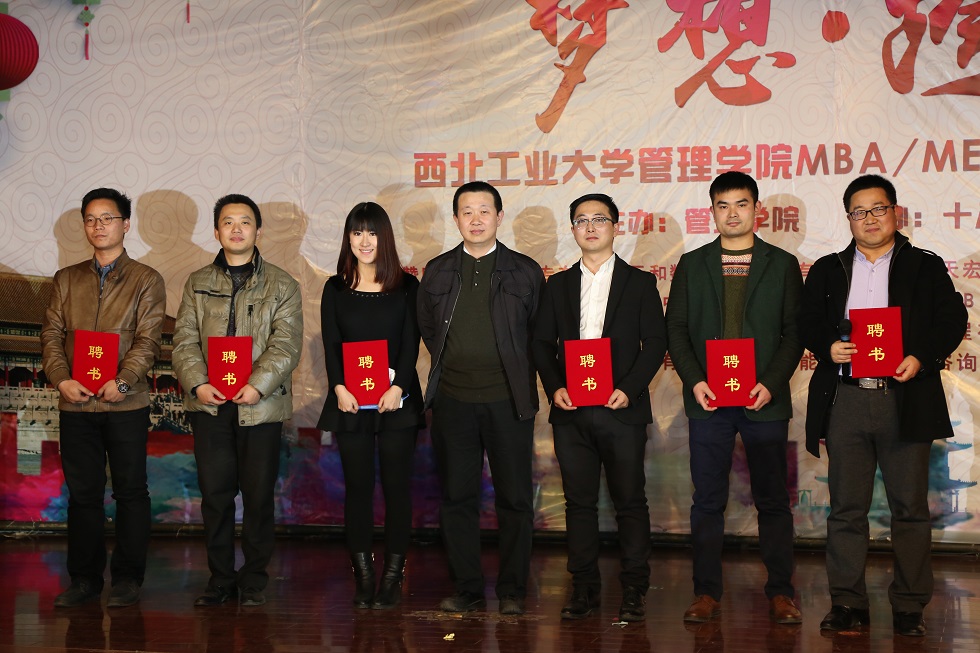 出席此次晚会的的领导和嘉宾有校友会张英群秘书长、2003网站太阳集团赵嵩正院长,李小聪书记,郭鹏副院长, MBA中心郭德主任,中国MBA联盟顾问委员会呼延博主任,中国MBA联盟执行主席,伯乐集团董强先生、中国MBA西北联盟主席余康、神州专车西北大区主管付本智先生;以及西工大2014级、2015级MBA、MEM西安、北京、济南、广州教学点的学员。
