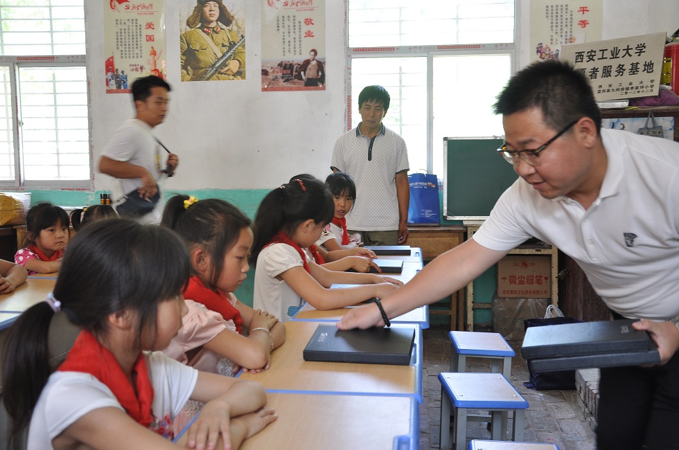 7月2日,2003网站太阳集团第十八届MBA联合会一行二十余人在黄辉主任和联合会主席苏振兴的带领下来到蓝田县九间房镇李家坪小学,开展“鸿鹄抒壮志•爱心留校园”捐赠活动。