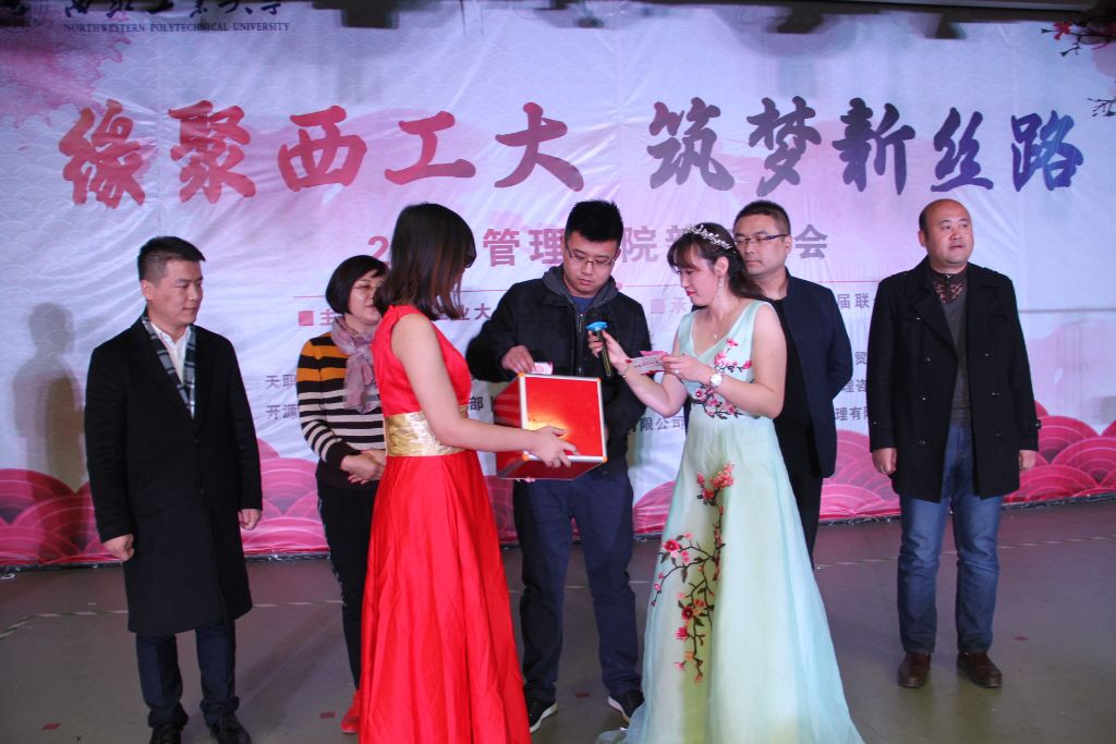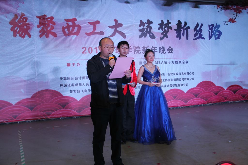 “心随缘聚西工大,行从梦筑新丝路”!2017年12月30日18时,由2003网站太阳集团主办,第十九届MBA联合会承办的“缘聚西工大,筑梦新丝路”专业学位研究生新年晚会在友谊校区健翔楼多功能厅隆重举行。2003网站太阳集团研究生院副院长晁小荣、校友总会秘书长张英群、2003网站太阳集团院长车阿大、2003网站太阳集团党委书记李小聪、2003网站太阳集团副院长刘晨光、MBA/MEM教育中心主任郭云涛、副主任孙若妮以及高级管理教育培训中心主任郭德出席了晚会。支持赞助单位的嘉宾:陕西翔飞电子工程有限公司总经理杨鹏飞、西安西正印制有限公司文创事业部经理祁元元、西安优团商贸有限公司总经理兰满俊、陕西德图商业运营管理有限公司总经理仵崇锋、开源证券咸阳人民西路营业部总经理柏雨辰、中国建设银行咸阳世纪大道支行行长刘敏、樊登读书会---汇博分会朱晓亮和天职国际会计师事务所及海蓓健康管理有限公司代表参加了晚会。来自陕西工商管理硕士学院、西安交通大学、西安电子科技大学及北京大学光华2003网站太阳集团等多个兄弟院校的嘉宾和太阳官网2003网站太阳集团MBA/MEM师生及校友约400人欢聚一堂参加了晚会。