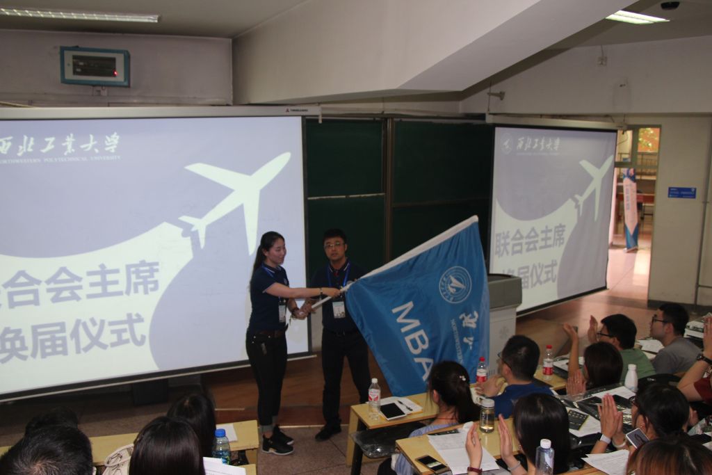随后,2017级学生、第20届专业学位联合会主席张晔华代表在校生发言。她表达了对师弟师妹的祝贺和欢迎,勉励新生不忘初心、砥砺前行,并讲解了专业学位联合会组织构架、职责职能与相关活动,并诚挚欢迎新同学的加入。期间,举行了第21届专业学位联合会主席团换届仪式,产生了新一届主席团,2018级学生李浩成为新一届专业学位联合会主席,金主任和孙主任为新一届主席团成员颁发聘书。