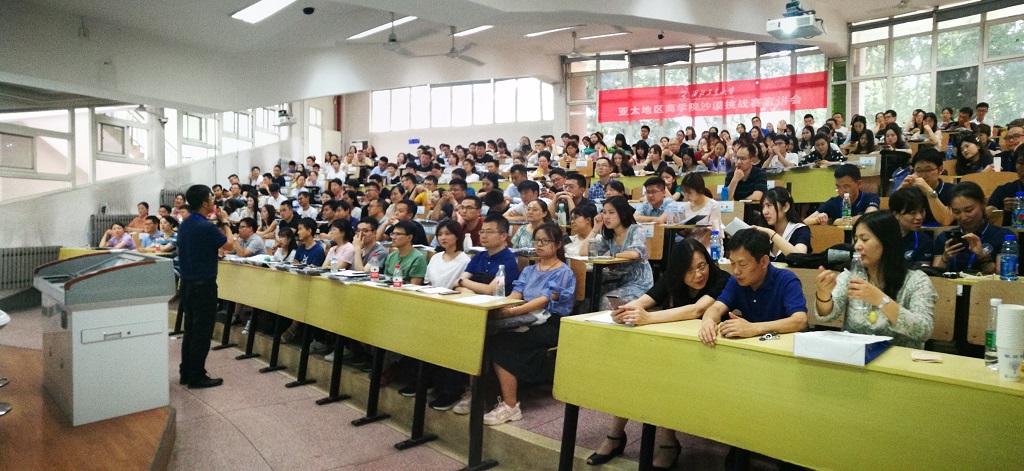 李浩同学对新生做了第九届亚太地区商学院沙漠挑战赛宣讲,通过“沙九”的宣传片,点将台上的豪言壮语、意气风发,行进途中的士气高涨、步步为营,冲向终点的欢呼雀跃、喜极而泣……一幕幕场景给所有观看宣传片的同学留下了深刻印象。李主席同时亦是“沙九”队长,回顾了上一届“沙八”的赛事、将“亚沙”的活动赛制、规则、形式与内涵进行了说明。特别是 “沙八”队员们的热情、坚韧、永不服输和战胜自我的精神与行动,使在座的同学们备受鼓舞。