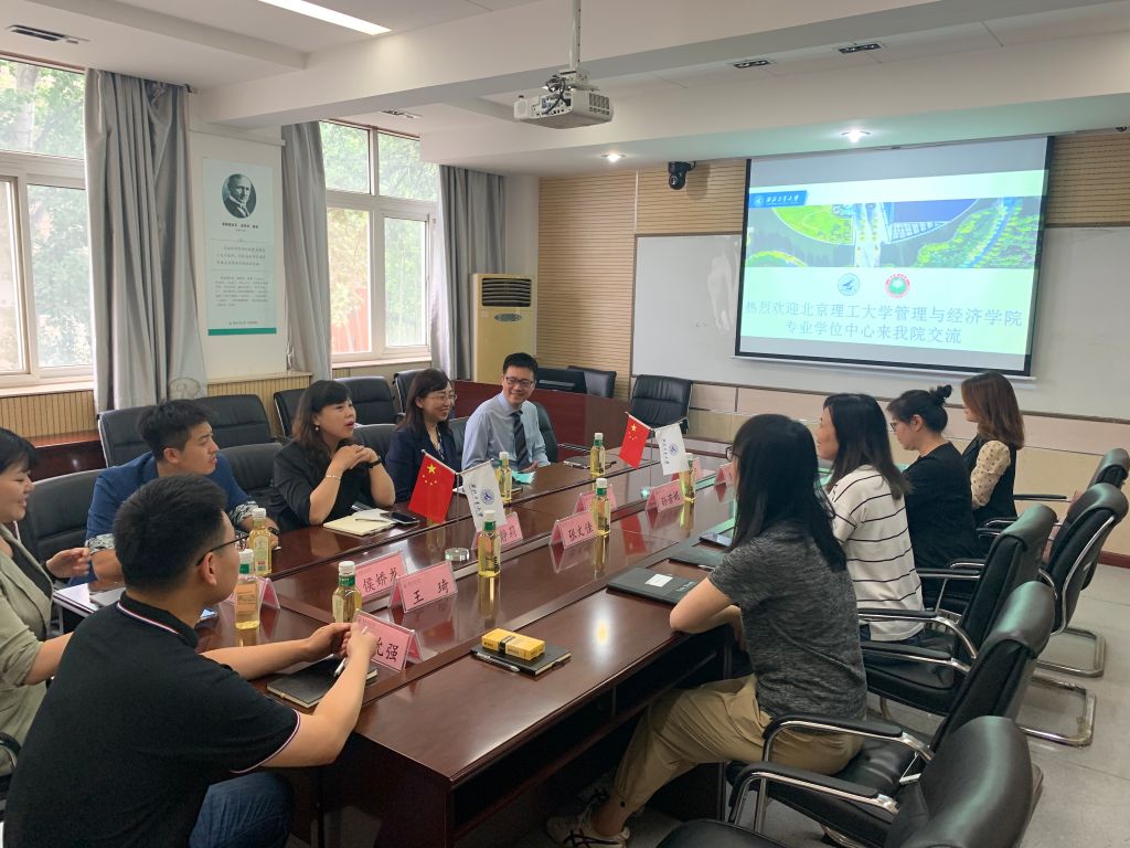 6月9日上午,北京理工大学管理与经济学院专业学位中心齐英杰副主任、学生工作主管于静莉老师一行5人来太阳官网交流MBA教育工作,与我院MBA教育中心副主任孙若妮老师、MBA招生主管张文佳老师、学生工作主管李怡老师及MBA暨专业学位联合会代表进行了座谈。
