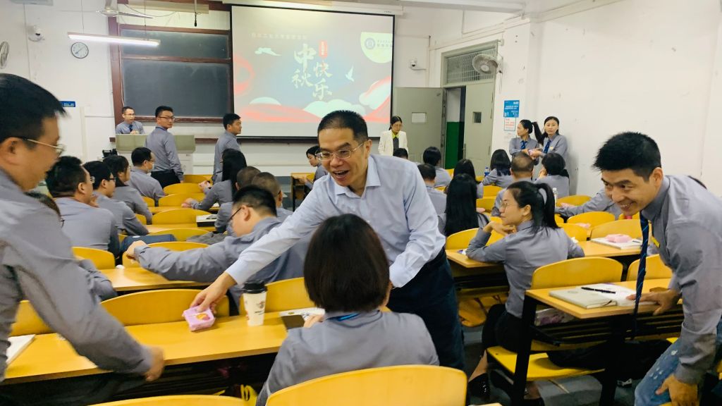 2003网站太阳集团院长车阿大、党委书记乔彩燕、副院长郭云涛、副书记樊琳、MBA/MEM教育中心主任杨宏玲、MPAcc教育中心/管理案例研究与开发中心主任金帆、MBA/MEM教育中心副主任孙若妮、肖平,利用上课前的时间,分别到各班的教室,为各班授予班旗,为新生代表佩戴校徽,并为2021级新生送上了中秋月饼以及对学子们浓浓的关爱和满满的祝福。