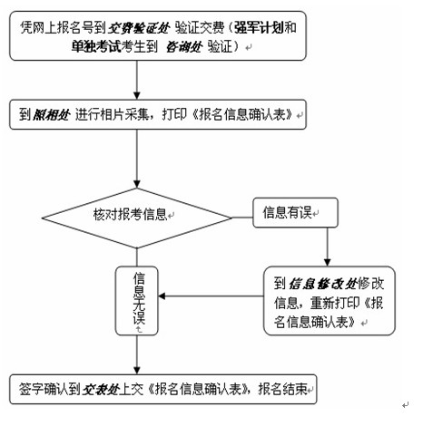 2.按照教育部有关规定,经考生本人确认的报名信息此后一律不作修改。未通过网上学历(学籍)校验的考生,在现场确认时应提供学历(学籍)认证报告。未提供学历(学籍)认证报告的,不予现场确认。