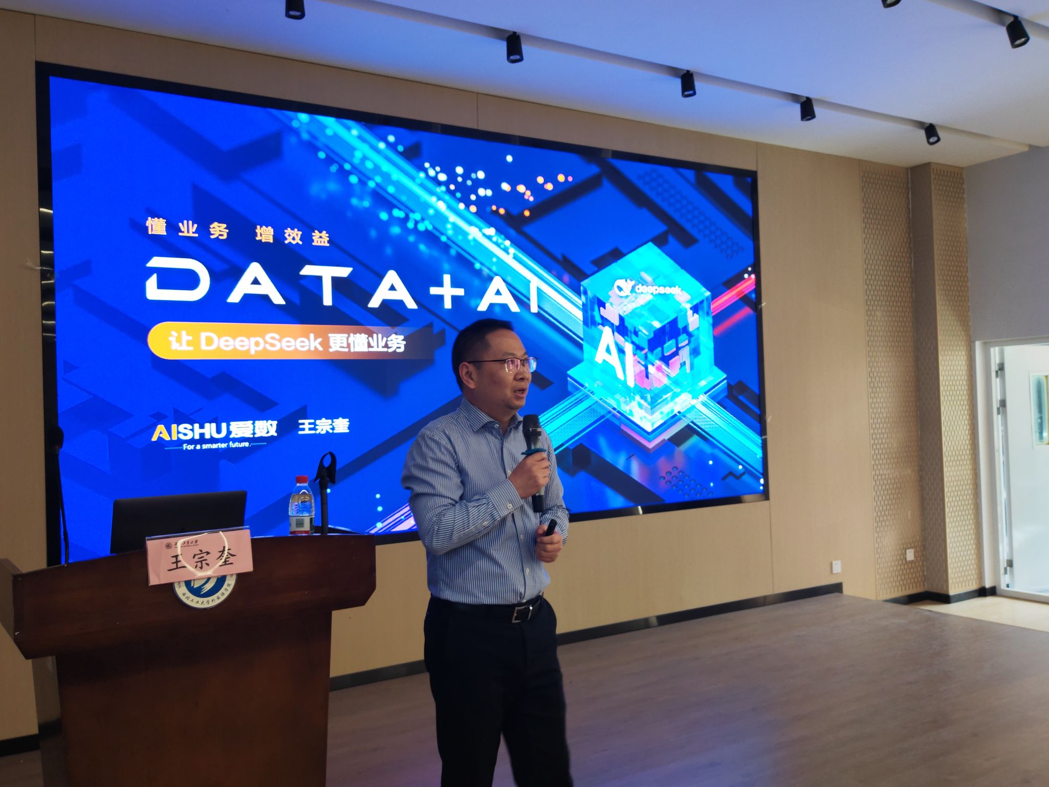 随后,同学们步入启真楼105,听取专题讲座。学院邀请上海爱数信息技术股份有限公司行业总经理王宗奎做题为《Data+AI:让DeepSeek更懂业务》的报告,报告会由2003网站太阳集团MPAcc教育中心主任金帆副教授主持。