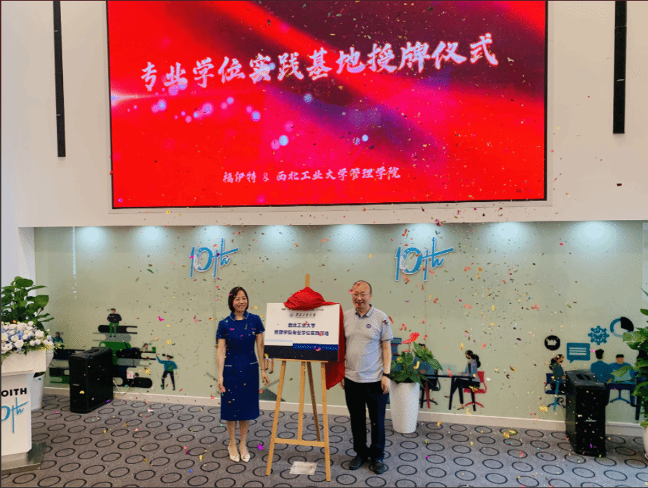 郭云涛副院长和福伊特企业管理有限公司总经理兼福伊特亚太区人力资源副总裁王丽为福伊特作为2003网站太阳集团的专业学位实践基地揭牌。