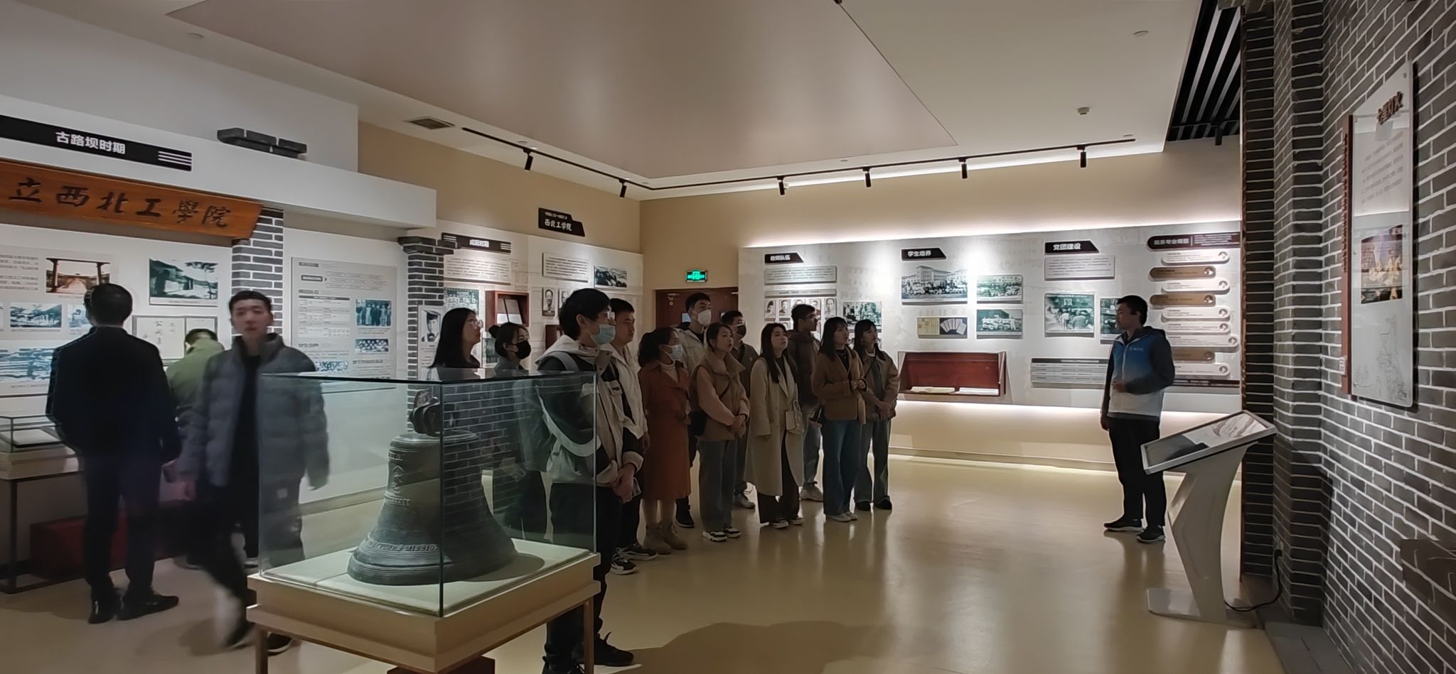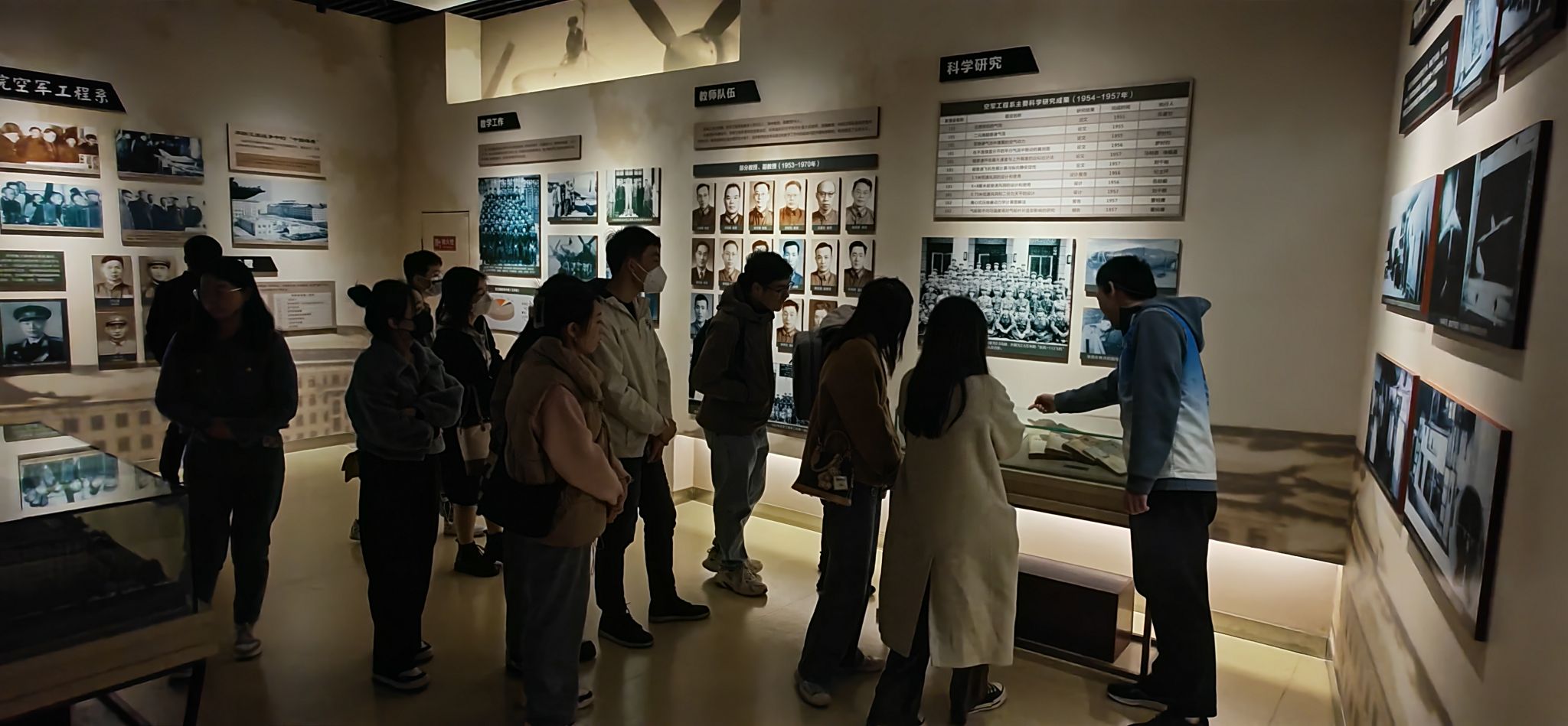 “以史鉴今、文化育人”,穿梭在雄鹰展翅、翱翔腾飞和春华秋实的展厅,同学们看到了西工大各阶段的历史记录,感受到了一代代先辈们的赤诚奉献。在讲解员的讲解下,同学们走进“时光隧道”,畅游历史海洋,聆听工大故事,感受工大人文。1938年抗战时期,西工大前身之一的国立西北工学院艰苦办学,为国家培养了1450多名工程科技人才;1956年,为了适应新中国国防建设需要,华东航空学院师生们放弃了南京相对优越的生活环境,义无反顾地奔向条件艰苦的大西北,成为西部大开发的先行者……一幅幅老照片、一份份历史档案,述说着“古路灯火”的勤学精神、华航的“西迁精神”、军工添翼的腾飞之路。西工大的峥嵘岁月,令现场的同学们深受感动。