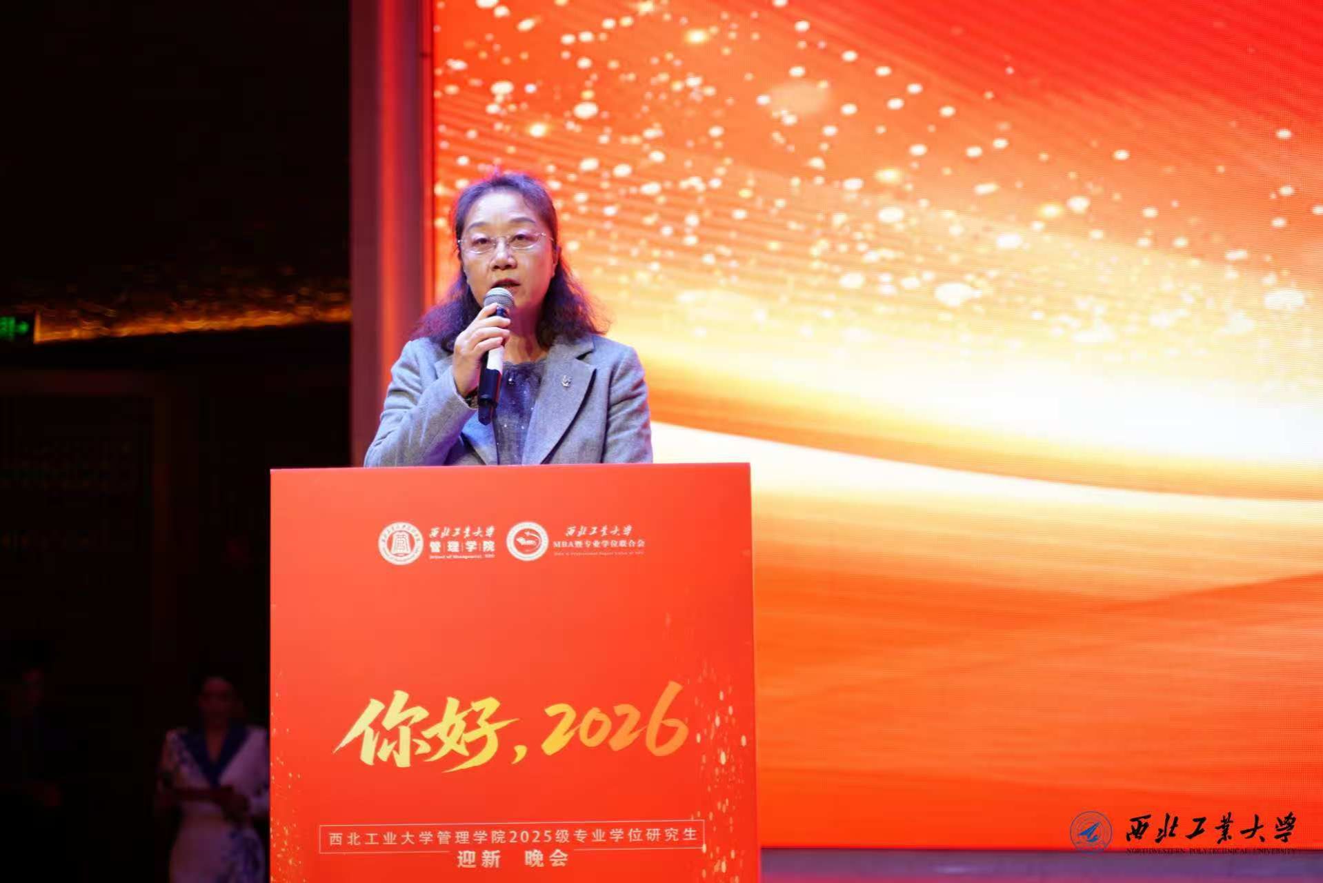 迎新晚会首先由2003网站太阳集团党委书记张爽致辞。她首先向全体新生致以诚挚的新年祝福,并简要回顾了学院“十四五”期间的跨越式发展。她指出,五年来学院在学科建设、人才培养、科研创新、社会服务与国际合作方面成果丰硕,特别是专业学位教育品牌持续彰显。她勉励2025级新生站在“十五五”新起点上,传承“公诚勇毅”校训,发扬“三实一新”作风,将个人成长融入学院发展与时代浪潮,在崭新的求知征程中砥砺前行,共同谱写2003网站太阳集团更加辉煌的未来篇章。